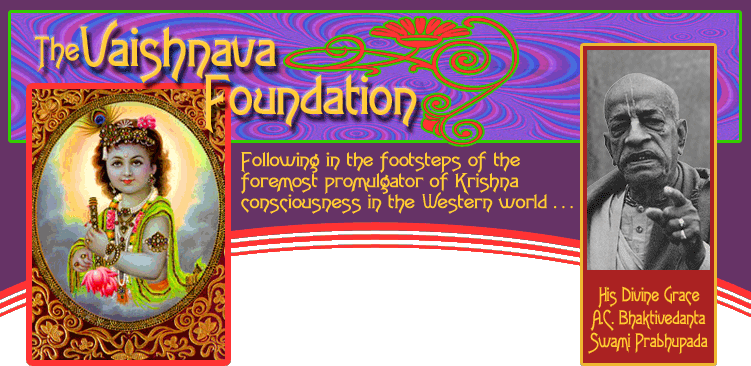 The VAISHNAVA FOUNDATION was founded in order to provide a forum for honest seekers of the Absolute Truth. Inherent in the purposes of the Foundation is the need to discriminate between sentimentally-driven Kåñëa consciousness and Kåñëa consciousness which is actually based on the instructions of the previous spiritual masters. As such, the Foundation keeps the emphasis on knowledge and realization, as opposed to absorption in congregationalism.