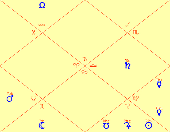 Aquarius. Mars was in the fifth in Taurus (indicating trouble with disciples).